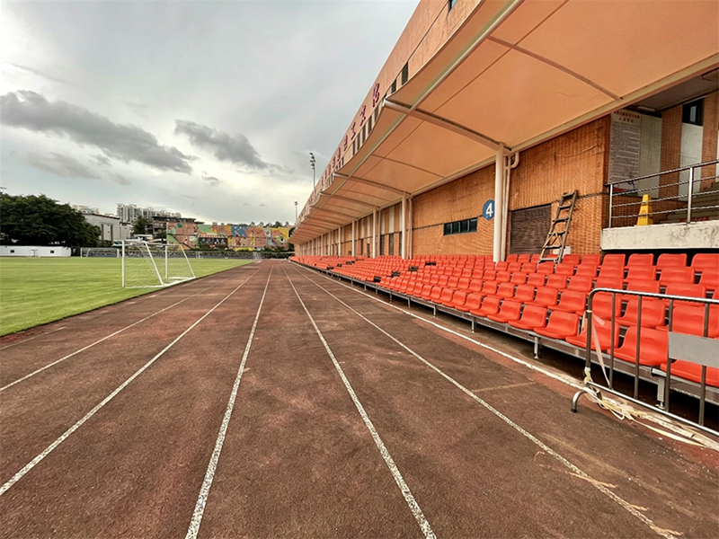 The renovation work will be completed in July 2024. The seats on both sides of the stands are orange, and the overall structure of the stands is steel, which can accommodate more than 1000 spectators. The stands are equipped with sunshades, which can provide shelter for citizens and friends who come to participate in activities during rainy weather.